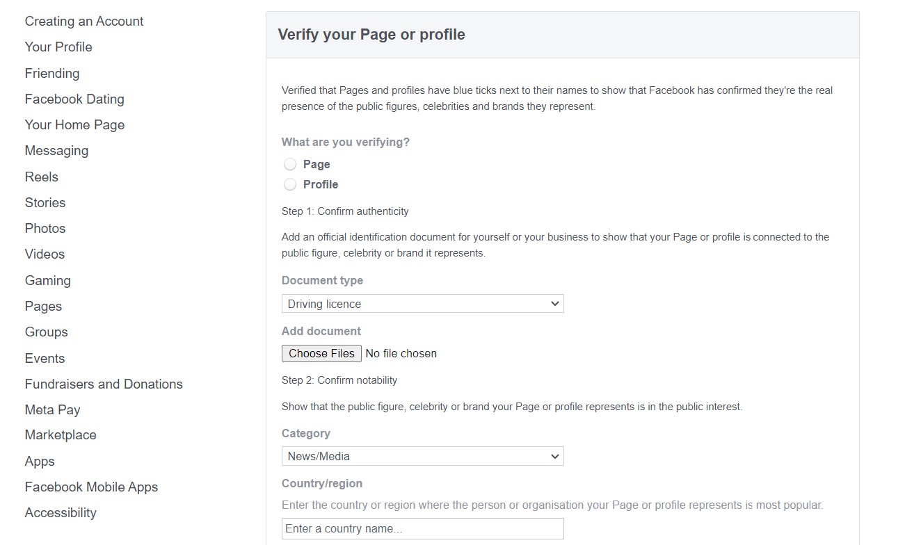 Bước 2 : Chọn loại hình xác minh là Trang (fanpage) hay Trang cá nhân và bổ sung các thông tin lần lượt theo các mục. Bạn có thể xem video hướng dẫn của mình theo link Youtube dưới đây :